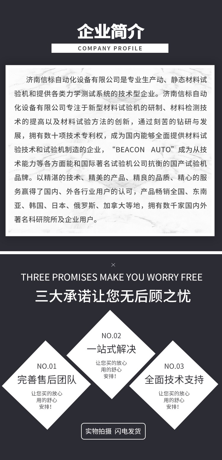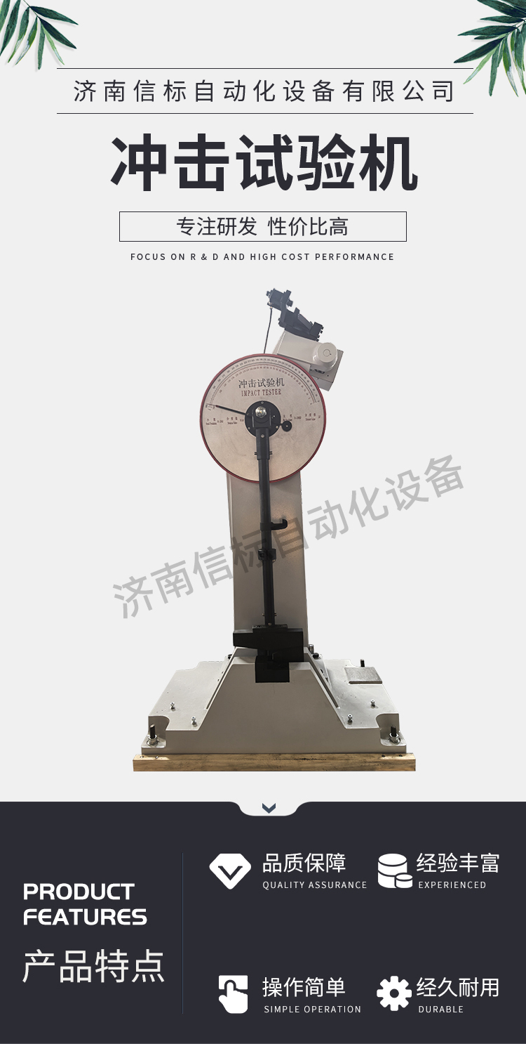 本機為微機屏顯式半自動沖擊試驗機,采用PC微機機控制,電動揚擺、沖擊、微機測量、運算、屏幕數(shù)顯結(jié)果并可打印等,工作效率高、測試精度高。在沖擊試樣后可利用剩余能量自動揚擺,做好下次試驗準備,操作簡便,工作效率高。在連續(xù)做沖擊試驗的試驗室和大量做沖擊試驗的冶金、機械制造等行業(yè)更能體現(xiàn)其優(yōu)越性。計算機可計算和數(shù)顯材料沖擊吸收功、沖擊韌性、擺錘揚角及試驗平均值,并可打印當次試驗數(shù)據(jù)及試驗的平均值。 按照 GB/T3808-2018 (擺錘式?jīng)_擊試驗機的檢驗)及 ISO148-2(金屬材料擺錘式夏比沖擊試驗第二部分,試驗機檢定)、ASTM E23 相關(guān)標準生產(chǎn)制造符合 GB/T229-2020(金屬夏比缺口沖擊試驗方法)、ISO148 (金屬材料擺錘式夏比沖擊試驗)、JJG 145-2007 (擺錘式?jīng)_擊試驗機檢定規(guī)程) 四、主要技術(shù)指標: 1、沖擊能量:150J、300J 2、擺錘預(yù)揚角:150° 3、擺軸中心至沖擊點距離:750mm 4、沖擊速度:5.2m/s 5、試樣支座跨距:40mm 6、鉗口圓角:R1-1.5mm 7、沖擊刀刃圓角:R2-2.5mm 8、沖擊刀厚度:16mm 9、角度準確度:±0.1° 10、試樣尺寸:10×10×55mm 11、外形尺寸:2124 mm×600 mm×1340 mm 12、試驗機凈重:450Kg 13、電源:交流三相 380V±10% 50HZ 5A 14、環(huán)境條件:周圍環(huán)境中無腐蝕介質(zhì),無震動,無強電磁場干擾。 五、設(shè)備主要配置: 1、300焦耳主機一臺; 2、150J、300J 擺錘各一個 3、取擺傳動裝置一套(裝在主機上) 4、自動掛擺裝置一套(裝在主機上) 5、保險機構(gòu)一套(裝在主機上) 6、安全防護裝置一套 7、擺錘拆卸器一只 8、支座調(diào)校器一只 9、試樣對中器一只 10、聯(lián)想打印機一套 專用測量軟件一套
