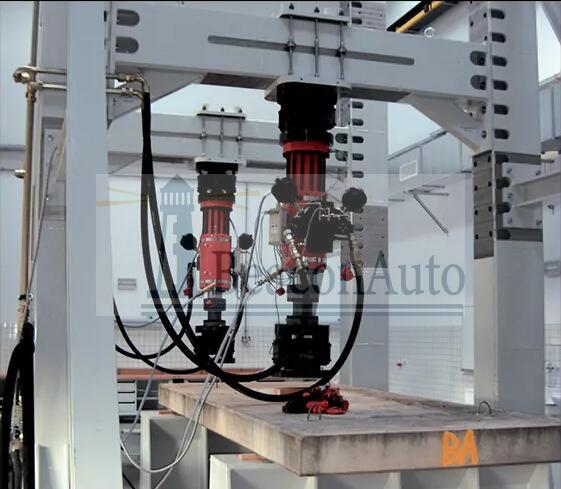 BaT2510-4 土木工程靜態力學加載試驗系統 土木工程靜態力學加載試驗系統產品簡介: 土木工程靜態力學加載試驗系統,適用于主要應用于橋梁、建筑、學校土木工程研究等力學結構靜態性能的試驗研究。主要用途包括: 完成梁、墻、柱、框架、節點、以及樓板等結構件的低周反復加載,保載、卸載等常規試驗。 該系列產品具有輸出力范圍廣,控制精度高,使用方便,可靠性高等特點。該系統在研制、開發過程中吸取國際先進電液伺服控制技術,結合國內用戶的實際使用狀況設計而成。伺服作動器、伺服動力液壓站、力加載框架等關鍵部件為我公司設計制造,伺服閥、傳感器、密封件等關鍵外購件均選用國際、國內同類產品的著名品牌產品,大大提高了系統的穩定性和可靠性,試驗機的整體性能與國際先進產品技術水平相當。 土木工程靜態力學加載試驗系統既能低周疲勞試驗、程序控制疲勞試驗,也能進行靜態的恒速率、恒應變、恒應力控制下的試驗和各種常規的力學性能試驗,還可進行斷裂力學試驗,自然力量模擬試驗,如地震、風浪等。根據需要也可以進行部分的工況模擬等,因此有著其它任何種類的試驗機所不能比擬的優勢; 在土木工程方面我們有針對結構試驗而設計的大噸位作動器,作動器形式有單出桿和雙出桿兩種結構形式,輸出力范圍從100kN到10000kN,行程可根據用戶實際需求而定,作動器標準行程200--500mm(±100mm/±250mm),根據結構試驗要求可配置不同規格的作動器,廣泛應用于新型混凝土材料、復合結構件材料的靜態力學性能試驗,包括拉伸、壓縮、三點四點彎曲試驗、;也可以進行結構件的疲勞試驗,如長支撐梁,公路橋等。從簡單的靜態結構試驗到原尺寸大型構件地震模擬試驗,從單通道試驗到大型土木工程試驗室配置,從支柱彎曲到三軸橡膠橋梁軸承試驗,該系列設備均可為你提供極大的幫助,可以助你驗證新概念、開發更新、更有效、更經濟的土木材料和結構 土木工程靜態力學加載試驗系統方案描述: 土木工程靜態力學加載試驗系統主要組成部分有: 1.自平衡門式反力框架、1套 2.伺服作動器:3000KN/1500雙出桿作動器各1只; 3.伺服動力液壓站;大流量遠程控制伺服液壓系統,包括分油閥塊和管路。 4.數據采集控制系統:雙通道靜載控制器,包括擴展采集和軟件 5.各路力傳感器和位移傳感器 6. 根據需要配置各種球鉸支座 NO.1自平衡門式反力框架 土木工程靜態力學加載試驗系統功能及基本參數: 1、為結構試驗提供多功能綜合反力框架; 2、多功能綜合反力架采用自平衡概念設計; 3、根據不同的試驗,反力架橫梁液壓升降自由調節; 4、為加載設備、結構試件預留相應的安裝連接; 5、主梁在可調節加載范圍內豎向承載力設計值為4000kN; 6、反力架可以抵抗2000kN的雙向水平荷載,可抵抗偏壓柱試驗、復雜節點加載試驗時產生的水平反力。 7、反力架采用Q345-B結構鋼; 8、上橫梁配有獨立的升降系統,上橫梁升降操作便捷,安全。 反力架材料選用Q345-B鋼板,試驗空間大,且高度空間可調整,側向也需要進行施加載荷,這就要求整體框架要有足夠的剛度,底座、立柱、橫梁采用等強度廂型梁焊接結構,立柱帶有斜撐,以抵抗試件的側向加載力;立柱與底座間緊密接觸,這樣可以在試驗過程中盡量減少立柱的伸長對試驗結果的影響。整體框架構造及其每個部件都進行有限元分析,并根據分析結果反復進行結構的優化設計,以達到最滿意的效果。 橫梁通過安裝在兩立柱上的螺栓調整其垂向位置,操作簡單,調整到試驗位置后,通過螺栓進行定位鎖緊,消除間隙。為了保證橫梁升降的穩定性和安全性,對升降橫梁用加強螺栓定位。 橫梁配有獨立的升降機構,兩側固定有升降用舉升油缸,通過控制舉升油缸的升降來完成對試驗空間的無級調整。 NO.2伺服作動器 伺服直線作動器是加載系統的執行部件,系統通過作動器對被測試件施加試驗力。伺服直線作動器由作動器本體、伺服閥塊組、球鉸關節支座、流體連接件等部分組成。作動器內置磁致伸縮位移傳感器用于測量試驗位移,負荷傳感器安裝在作動器活塞桿前端用于測量試驗負荷,負荷傳感器采用美國世銓公司試驗機專用動態高精度負荷傳感器。伺服閥采用航宇試驗機專用電液伺服閥。 作動器結構特點: l 系統采用消隙裝置,力值自動定心,減小側向力,降低拉壓試驗時的沖擊,改善試驗波形。伺服直線作動器兩端采用球鉸關節支座結構,最大限度的減少來自被試件側向力對作動器的損傷,關節支座結構采用模塊化設計,拆除后可以進行后法蘭連接,關節支座軸承間隙磨損后可調整,保證試驗系統運轉靈活。結構類似美國MTS公司249 Swivel Base。 l 結構型式:雙出桿,雙作用;參照國際著名公司MTS的伺服直線作動器結構特點,采用對稱四通伺服閥控對稱(非對稱)作動器原理設計。 l 伺服直線作動器活塞桿的支撐打破傳統設計,采用非金屬支撐、大間隙設計、高抗側向力,具有高速不燒結自潤滑的特點。多級支撐組合導向機構,起動壓力小于0.3MPa,無爬行現象。 l 組合密封,高壓密封,低壓密封及間隙回管,油缸總成作到無滲漏油。組合密封結構具有良好的互換性,方便維修。 l 位移傳感器采用美國MTS公司磁致位移傳感器,特點:具有無摩擦運動和真正的無限分辨率。精度高,可靠性高,位移傳感器內置于活塞桿內,運動靈活不受外來干擾。 l 作動器