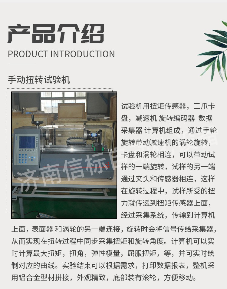 試驗(yàn)機(jī)用扭矩傳感器,三爪卡盤(pán),減速機(jī) 旋轉(zhuǎn)編碼器 數(shù)據(jù)采集器 計(jì)算機(jī)組成,通過(guò)手輪旋轉(zhuǎn)帶動(dòng)減速機(jī)的渦輪旋轉(zhuǎn),卡盤(pán)和渦輪相連,可以帶動(dòng)試樣的一端旋轉(zhuǎn),試樣的另一端通過(guò)夾頭和傳感器相連,這樣在旋轉(zhuǎn)過(guò)程中,試樣所受的扭力就傳遞到扭矩傳感器上面,經(jīng)過(guò)采集系統(tǒng),傳輸?shù)接?jì)算機(jī)上面,表面器 和渦輪的另一端連接,旋轉(zhuǎn)時(shí)會(huì)將信號(hào)傳給采集器,從而實(shí)現(xiàn)在扭轉(zhuǎn)過(guò)程中同步采集扭矩和旋轉(zhuǎn)角度。計(jì)算機(jī)可以實(shí)時(shí)計(jì)算最大扭矩,扭角,彈性模量,屈服扭矩,等,并可實(shí)時(shí)繪制對(duì)應(yīng)的曲線(xiàn)。實(shí)驗(yàn)結(jié)束可以根據(jù)需求,打印數(shù)據(jù)報(bào)表,整機(jī)采用鋁合金型材拼接,外觀精致,底部裝有滾輪,方便移動(dòng),更多金屬線(xiàn)材扭轉(zhuǎn)試驗(yàn)機(jī)資料請(qǐng)聯(lián)系我們濟(jì)南信標(biāo)自動(dòng)化設(shè)備有限公司。專(zhuān)業(yè)生產(chǎn)液壓萬(wàn)能試驗(yàn)機(jī),疲勞試驗(yàn)機(jī),扭轉(zhuǎn)試驗(yàn)機(jī),高溫蠕變?cè)囼?yàn)機(jī),彈簧試驗(yàn)機(jī),彎曲試驗(yàn)機(jī),沖擊試驗(yàn)機(jī),彎曲強(qiáng)度試驗(yàn)機(jī),抗拉強(qiáng)度試驗(yàn)機(jī)等。 |