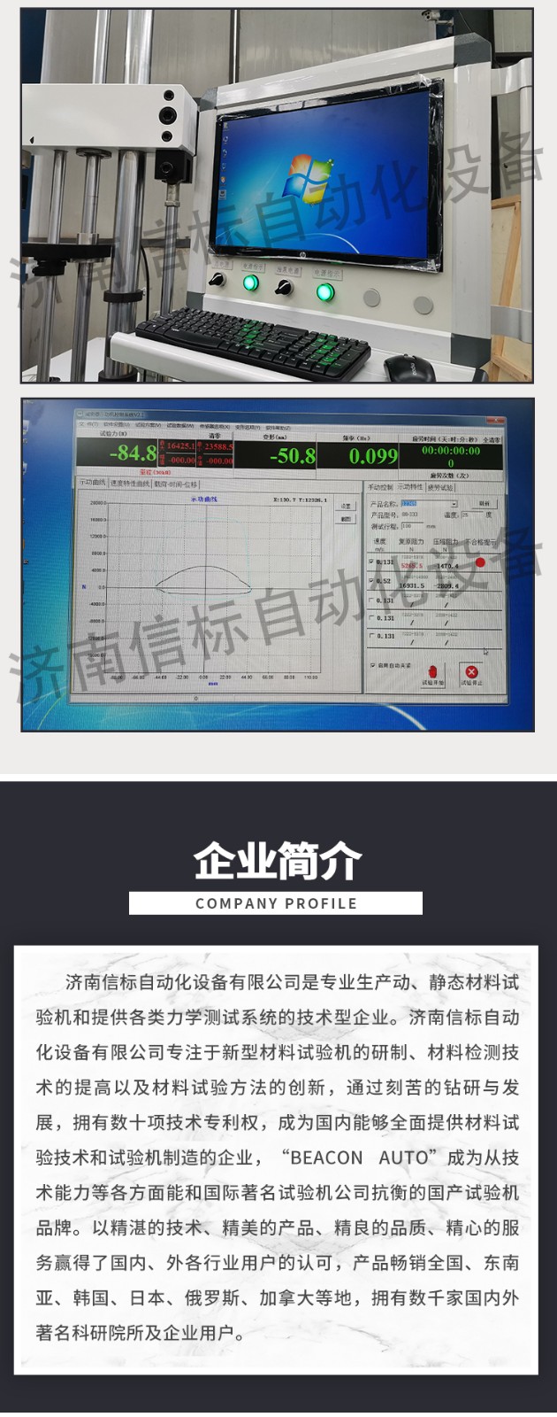 濟(jì)南信標(biāo)自動(dòng)化設(shè)備有限公司主要生產(chǎn):動(dòng)靜態(tài)萬(wàn)能疲勞試驗(yàn)機(jī),接骨板彎曲試驗(yàn)機(jī),縫合線拉伸疲勞試驗(yàn)機(jī),髖膝關(guān)節(jié)磨損試驗(yàn)機(jī),電子萬(wàn)能試驗(yàn)機(jī)、液壓萬(wàn)能試驗(yàn)機(jī)、巖石三軸、四軸,電液拉力試驗(yàn)機(jī),材料試驗(yàn)機(jī),高低溫蠕變,高低頻疲勞,拉伸、扭轉(zhuǎn)、杯突等二十多個(gè)系列兩千多個(gè)的品種。
