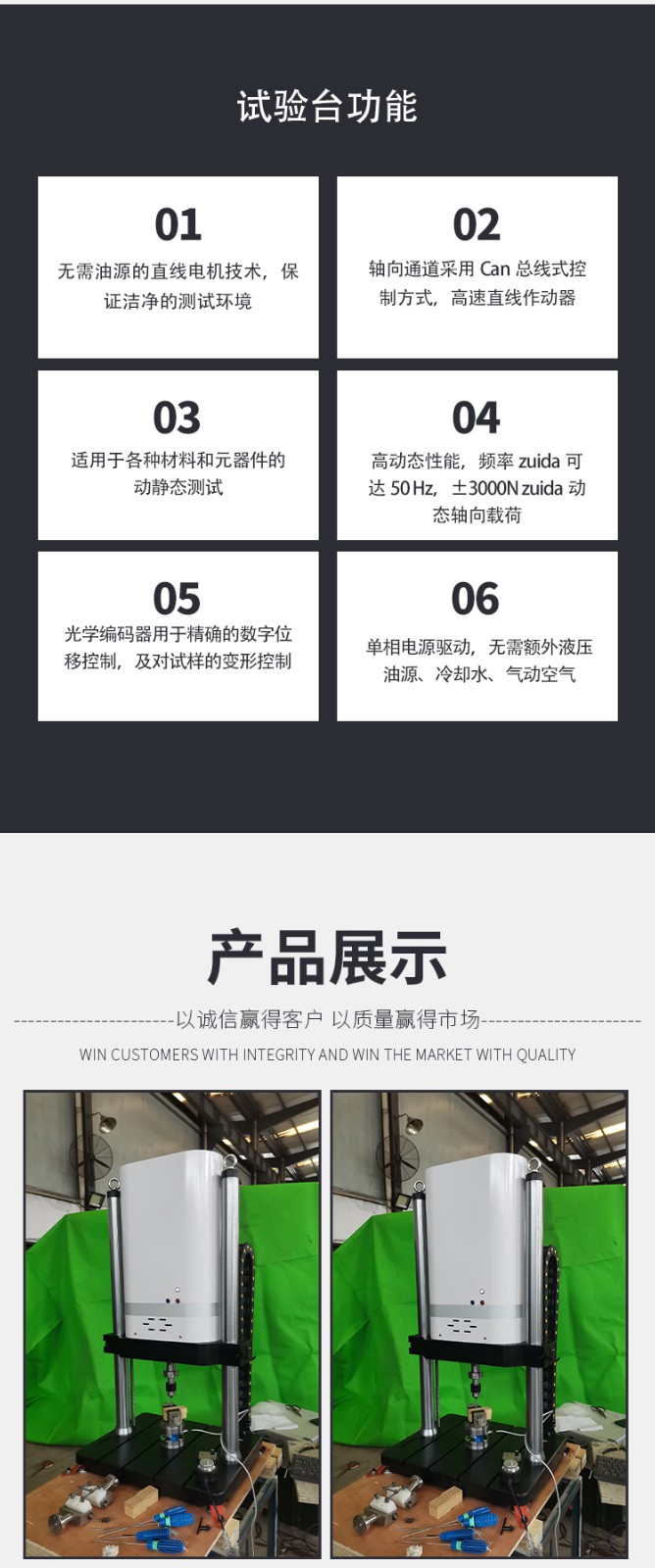 濟南信標自動化設備有限公司主要生產:動靜態萬能疲勞試驗機,接骨板彎曲試驗機,縫合線拉伸疲勞試驗機,髖膝關節磨損試驗機,電子萬能試驗機、液壓萬能試驗機、巖石三軸、四軸,電液拉力試驗機,材料試驗機,高低溫蠕變,高低頻疲勞,拉伸、扭轉、杯突等二十多個系列兩千多個的品種。