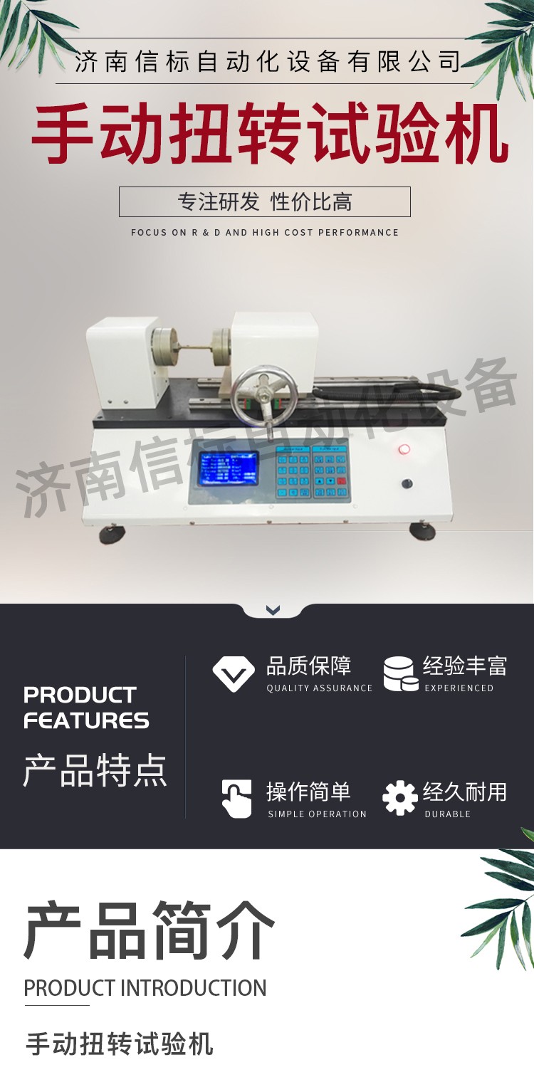 一、介紹 試驗機(jī)用扭矩傳感器,三爪卡盤,減速機(jī) 旋轉(zhuǎn)編碼器 數(shù)據(jù)采集器 計算機(jī)組成,通過手輪旋轉(zhuǎn)帶動減速機(jī)的渦輪旋轉(zhuǎn),卡盤和渦輪相連,可以帶動試樣的一端旋轉(zhuǎn),試樣的另一端通過夾頭和傳感器相連,這樣在旋轉(zhuǎn)過程中,試樣所受的扭力就傳遞到扭矩傳感器上面,經(jīng)過采集系統(tǒng),傳輸?shù)接嬎銠C(jī)上面,表面器 和渦輪的另一端連接,旋轉(zhuǎn)時會將信號傳給采集器,從而實現(xiàn)在扭轉(zhuǎn)過程中同步采集扭矩和旋轉(zhuǎn)角度。計算機(jī)可以實時計算最大扭矩,扭角,彈性模量,屈服扭矩等,并可實時繪制對應(yīng)的曲線。實驗結(jié)束可以根據(jù)需求,打印數(shù)據(jù)報表,整機(jī)采用鋁合金型材拼接,外觀精致,底部裝有滾輪,方便移動。試驗機(jī)用扭矩傳感器,三爪卡盤,減速機(jī) 旋轉(zhuǎn)編碼器 數(shù)據(jù)采集器 計算機(jī)組成,通過手輪旋轉(zhuǎn)帶動減速機(jī)的渦輪旋轉(zhuǎn),卡盤和渦輪相連,可以帶動試樣的一端旋轉(zhuǎn),試樣的另一端通過夾頭和傳感器相連,這樣在旋轉(zhuǎn)過程中,試樣所受的扭力就傳遞到扭矩傳感器上面,經(jīng)過采集系統(tǒng)。 二、基本參數(shù) 1.最大扭矩:50NM 2.扭矩分辨率:0.01NM 3.角度范圍:0-999999度,(無限制) 4.夾持范圍:3-12mm 5.測試空間:20-150mm 6.外形尺寸:850*320*260 7.重量:45kg 三配置: 1.計算機(jī):1套 2.采集儀:1套 3.傳感器:1套 4.減速機(jī):1套 5.編碼器:1套 6.隨機(jī)工具:1套 7.三爪夾頭:2套