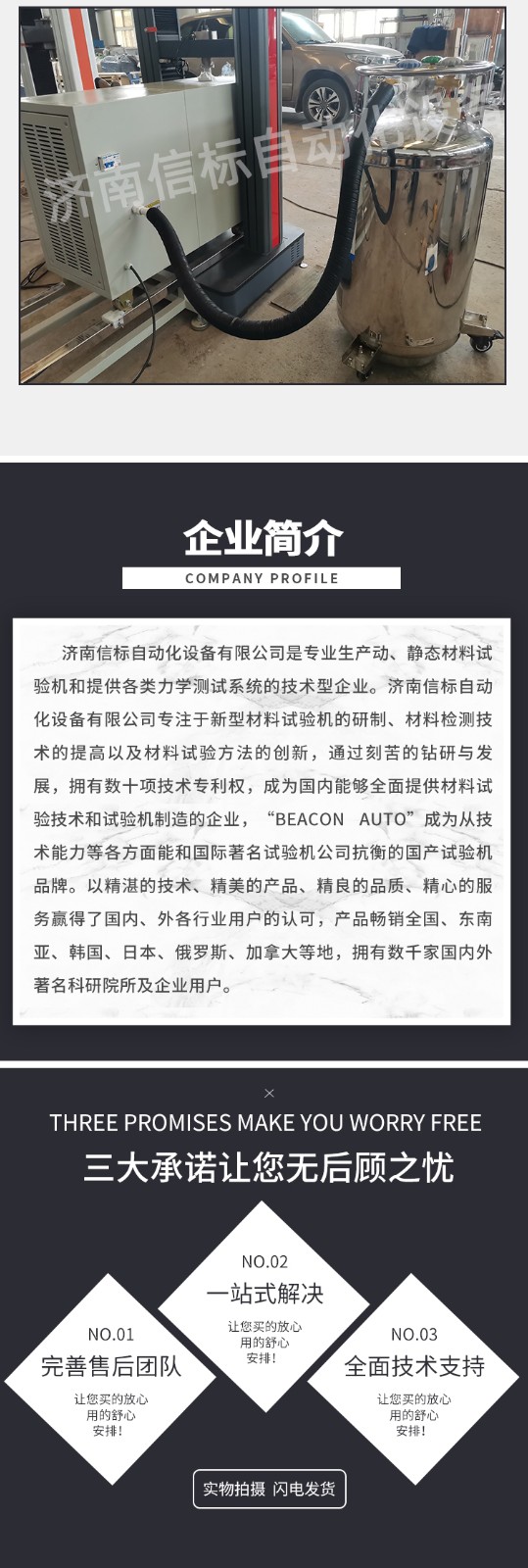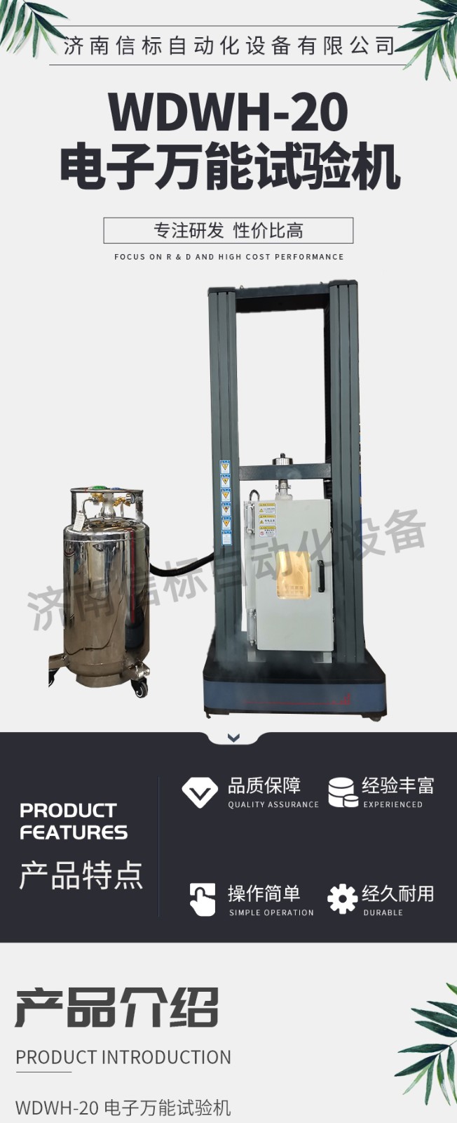 測量參數: 1. 最大試驗力: 10/20/30/50kN 2. 試驗力測量范圍: 0.4%--100%。 3. 試驗力示值精度:優于示值±1% 4. 試驗力分辨力:1/500000 5. 橫梁位移測量精度:分辨率高于0.0025mm 6. 變形測量精度: ±0.5% 7. 試驗速度范圍:0.0002—500mm/min,無級調速 8. 速度控制精度:±1%(0.0002~50mm/min); ±0.5%(50~3500mm/min) 9. 恒力、恒變形、恒位移控制范圍: 0.2%-100%FS 10.恒力、恒變形、恒位移控制精度: 設定值<10%FS時,設定值的±1.0%以內 設定值≥10%FS時,設定值的±0.1%以內 11. 變形速率控制精度: 速率<0.05%FS時為±2.0%設定值內 速率≥0.05%FS時為±0.5%設定值內 12. 試驗空間: A.拉伸空間:1000mm B.壓縮空間:1100mm C.寬度:450mm 13.下工作臺:450*250 14. 壓盤尺寸:φ100 mm 15. 整機電源:單相,220V±10%,50Hz,功率:750 W 16. 工作環境:室溫—35℃,相對濕度不超過80% 17. 主機尺寸: 870×730×1750mm 18. 重量:400kg 產品配置: 1、主機 一套 2、松下A7全數字伺服電機及伺服驅動器; 一套 3、高精度負荷傳感器; 5kn/1kn/500N/200/ 各一支 4、Hiwin精密滾珠絲杠; 2支 5、光電編碼器(2500線,內置); 1支 6、夾具:滿足海綿/汽車座椅所需工裝 1套(有多種) 7、三閉環測量系統一套,采用力,位移,應變等多種控制方式,試驗過程中可實時顯示力-位移,力-時間,應力-應變等多種試驗曲線,并可自動得出最大負荷,拉伸強度,斷裂伸長率等多種結果參數。 8、HP品牌計算機,21寸液晶顯示器; 9、打印機:HPA4彩色噴墨打印機; 10、專用試驗軟件:可執行GB,ISO,JIS、DIN,ASTM等多種試驗標準,全開放式,功能強大,方便操作,免費提供升級軟件,并可根據用戶需求自行編輯試驗軟件。