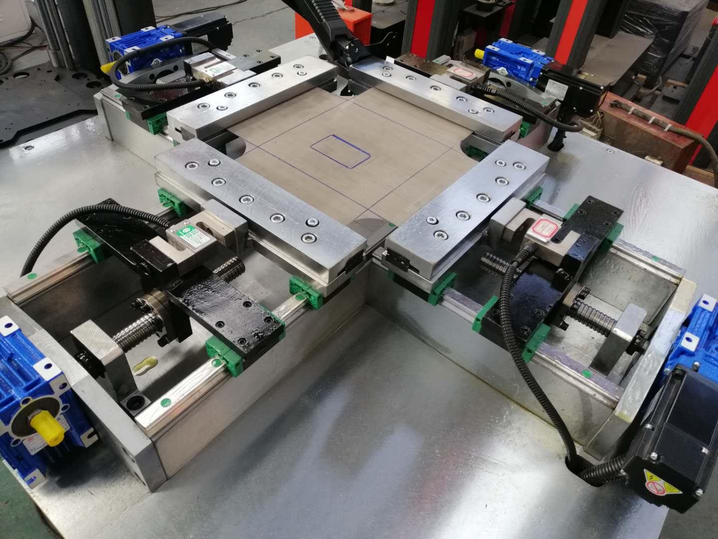 格室節點四軸拉伸測試系統 一、四軸拉伸測試系統基本功能介紹: 如附圖所示,四軸拉伸測試系統用于測試格室節點在四個方向拉伸狀態下,節點及母材的力學性能,四軸聯動,原位拉伸,四根拉伸主梁交叉布置,每套拉伸夾具下面分別布置兩組導軌,起到導向和拉伸時防轉的功能,夾具及橫梁移動時同步運行,X Y 方向分別布置測力傳感器和變形傳感器,分別測量兩個方向力及變形的變化。專用測試軟件,滿足新標準中相關要求。 專用工裝夾具,單邊夾持,夾持長度50mm,鉗口內部鑲嵌軟質材料,在保證夾持可靠的基礎上防止劃傷試件,機械式鎖緊,穩定可靠, 控制系統采用聯動補償機制,(4軸加工中心算法) 閉環控制,保證拉伸時,絕對位置不變,控制模式分為力控制和位移控制,其中力控制過程中,追加了位移超差補償,盡量降低試件的變形程度(正常是一個十字線,因為材料或者銷釘強度不同,受力變形存在不一致的情況,軟件中增加的補償算了,一旦位移超差,系統會自動補償,) 二、四軸拉伸測試系統軟件簡介 1. ConquerTest界面友好、使用方便、功能強大。 2. 數據庫采用ACCESS格式,方便攜帶和擴展 3. 同時可實時顯示三路采集,并可任意切換;外加顯示三路計算速度 4. 試驗時,可同時顯示多個曲線,可以設定需要顯示的坐標,例如:載荷-時間,載荷-位移,應力-應變等多種曲線,坐標滿度自動調節 5. 可以重新讀取已經完成的試驗,可以對試驗曲線進行放大、縮小、平移,可以選擇顯示并標注特征位置。可以事后修改試驗參數,可以強制指定特征點位置,并且重新計算修改后的結果,也可以還原。 6. 很好支持用戶自定義Excel報告,每個試驗可以支持多個用戶自定義報告,支持把試驗分析的曲線輸出到用戶自定義報告中 7. 可以方便添加新的試驗標準庫,可以在現有的標準上方便添加試驗,可以針對每個試驗設置不同的輸入、輸出項目,也可針對每個試驗設置不同的報告格式,以及多個自定義報告。 8. 可以在現有試驗的基礎上設定試驗加載的流程,試驗步驟設置靈活方便,通俗易懂。 · 試驗機設計、制造、檢驗依據下列標準相關條款 依據標準JT/T1328 1. GB/T2611《試驗機通用技術要求》 2. JJF1103《萬能試驗機計算機數據采集系統評定》 3. JJG139《拉力、壓力和萬能試驗機的檢定規程》 4. GB/T19274-2003/XXXX土工合成材料 塑料土工格室 5. JJT516-2004土工格室的尺寸規格及施工規范 四、四軸拉伸測試系統電氣系統: (1)采用交流伺服驅動器和交流伺服電機,性能穩定、可靠,具有過流、過壓、超速、過載等保護裝置。調速比可達1:100000。 (2)具有過載、過流、過壓、位移上下限位和緊急停止等保護功能。 (3)電氣控制線路參照國際標準,符合國家試驗機電氣標準,抗干擾能力強,保證了控制器的穩定性,實驗數據準確性。 五、控制系統: 我公司自主研發的全數字閉環測控系統具有許多先進的特性和技術創新,主要體現在: 1、實現了試驗力、試樣變形、位移和試驗進程的四種閉環控制; 2、數據采集系統由4路高精準24位A/D轉換通道組成。最高分辨率達1/300000,全程不分檔; 3、選用BB、AD、Xilinx等原裝名牌集成器件,全數字化設計; 4、符合PCI總線標準,微機自動識別和安裝,做到“即插即測”; 5、電子測量系統無電位器等模擬元件,保證互換性,方便維修更換 六、四軸拉伸測試系統技術參數 1. 整機指標 序號 | 檢驗項目 | 技術要求 | 1 | 最大試驗力 | 50KN(四通道) | 2 | 試驗力分辨率 | 1/300000全程不分檔 | 3 | 力值示值相對誤差 | 1%-100%量程范圍內 ±0.5% | 4 | 變形測量范圍 | 0.2%~100%FS | 5 | 變形分辨率 | 1/300000全程不分檔 | 6 | 變形示值誤差 | 優于±0.5% | 7 | 試驗力零點相對誤差 | ±0.1% | 8 | 位移分辨率 | 0.025mm | 9 | 力控速率調節范圍 | 0.005~5%FS/s | 10 | 力控速率控制精度 | 速率<0.05%FS/s時,為設定值的±2%以內; 速率≥0.05%FS/s時,為設定值的±1%以內; | 11 | 變形速率調節范圍 | 0.005~5%FS/s | 12 | 變形速率控制精度 | 速率<0.05%FS/s時,為設定值的±2%以內; 速率≥0.05%FS/s時,為設定值的±1%以內 | 13 | 位移速率調節范圍 | 0.001~300mm/min | 14 | 位移速率控制精度 | 速率<0.5mm/min時,為設定值的±1%以內; 速率≥0.5mm/min時,為設定值的±0.5%以內 | 15 | 恒力、恒變形、恒位移控制范圍 | 0.4%-----100%FS | 17 | 最大距離 | 200*200mm(單邊100) | 18 | 試樣最小取樣 | 200*200mm(單邊夾持50mm,中間預留100標距) | 20 | 設備尺寸(長x高x寬) | 1350*1350*850 | 21 | 電源電壓(須有可靠的接地) | ~220V±10% 50Hz | 22 | 機器重量 | 約600kg |